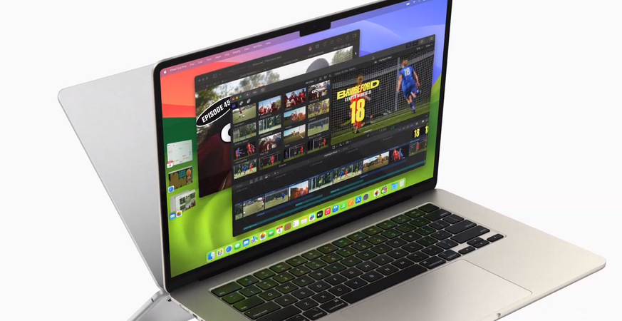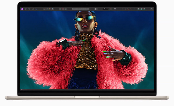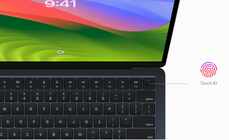 Těšte se na největší a nejjasnější displej, který kdy MacBook Air dostal – Air má totiž nově 15,3palcovou úhlopříčku. Garancí ještě kvalitnějšího zobrazení je pak podpora pro široký barevný gamut P3, který přináší sytější odstíny zelené a červené než sRGB. Navíc je zde i technologie True Tone automaticky optimalizující vyvážení bílé na základě teploty barev v prostředí pro přirozenější podívanou a podpora více než miliardy barev.