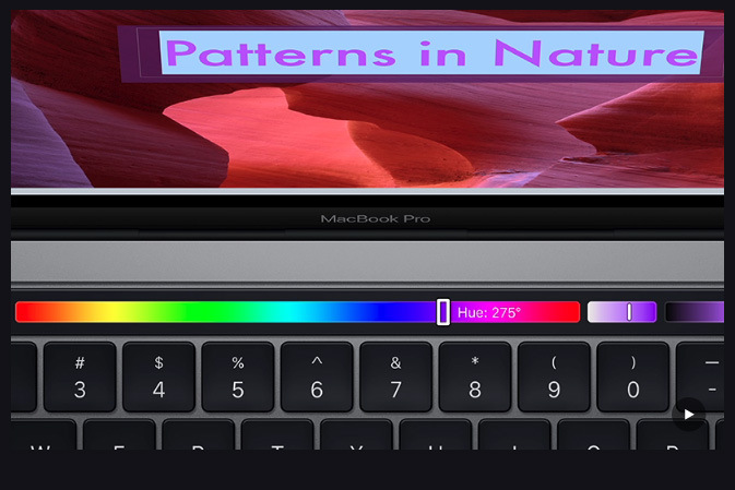 Prodlužte si prsty. Využijte všestranný Touch Bar, který v horní části nad klávesnicí nahradil funkční klávesy. Na Touch Baru se zobrazují relevantní nástroje podle toho, jaký program zrovna používáte. Intuitivní ovládání zahrnuje poklepání, posunutí, přejetí a podržení. Na horní pásek si lze přidat také vlastní zkratky, abyste měli své oblíbené aplikace vždy ihned po ruce.
