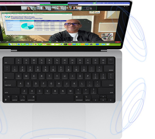 MacBook Pro disponuje webkamerou o rozlišení 1080p, aby podávala prvotřídní výkony i v horším osvětlení. Apple ale také nasadil hned tři mikrofony studiové kvality. Počítač tak spolehlivě zachytí i nejmenší detaily. Prvotřídní výkony lze čekat i z hlediska audia, když se MacBook Pro spoléhá rovnou na šest reproduktorů. Zatímco čtyři woofery v antirezonančním uspořádání zajistí hluboké basy, výkonné tweetery jsou zde pro dokonale čisté výšky. Vaše audiovizuální zážitky navíc umožní i technologie prostorového zvuku Dolby Atmos.