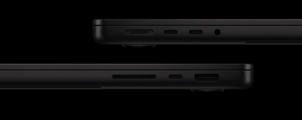 K dispozici je čtečka paměťových karet SDXC pro snadnější práci s fotografiemi. Nechybí ale ani HDMI pro snadné připojení k monitorům. Nabízí se také tři porty Thunderbolt 5 pro superrychlé přenosy dat i připojení periferií, stejně jako Wi‑Fi 6E a Bluetooth 5.3.