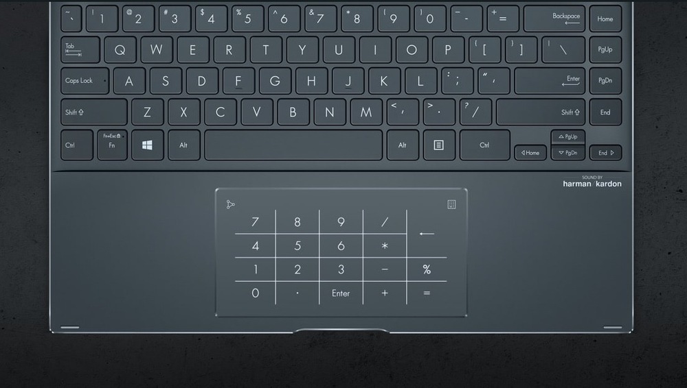 Inovativní touchpad Asus NumberPad 2.0 disponuje i funkcí numerické klávesnice s LED podsvícením, kterou využijete při častém počítání nebo práci s čísly.