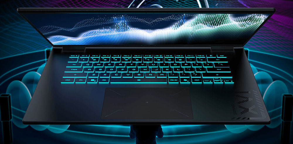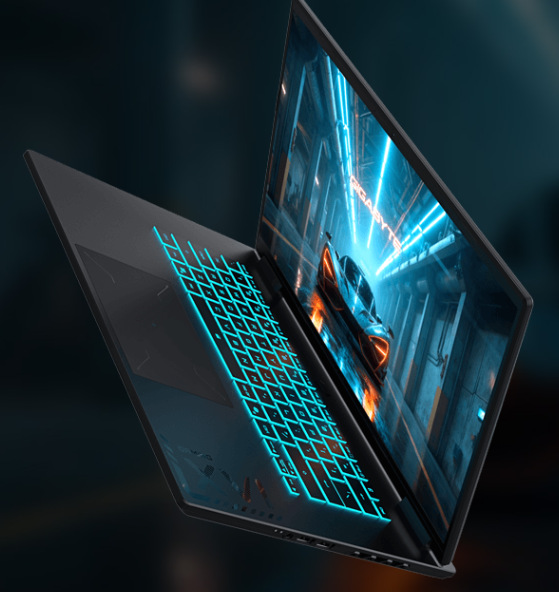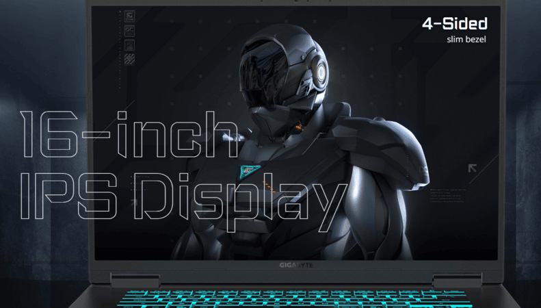 16" IPS displej s poměrem 16 : 10 nabízí rozlišení 1920 × 1200 px, obnovovací frekvenci 165 Hz a podporu technologie MUX Switch. Obraz je díky tomu plynulý, jasný a ideální i pro hraní na nejvyšší úrovni.