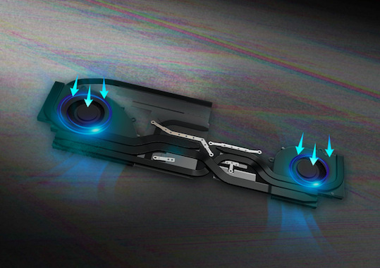 Nadměrnému přehřívání s negativním vlivem na herní výkon zabrání důmyslně zkonstruovaný chladicí systém Cooler Boost 5. Ten se skládá ze 2 silných ventilátorů a 6 tepelných trubic se zvětšeným vnitřním průměrem – vzduch se uvnitř těla notebooku opravdu dlouho neohřeje.