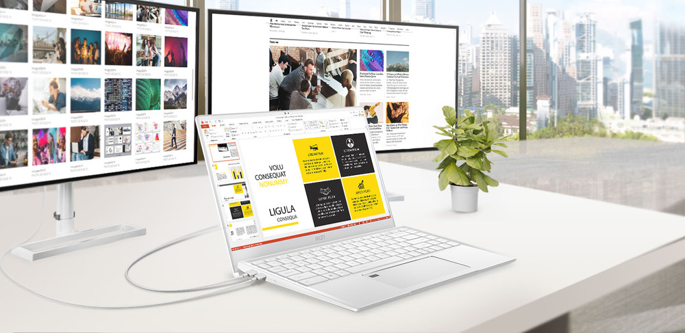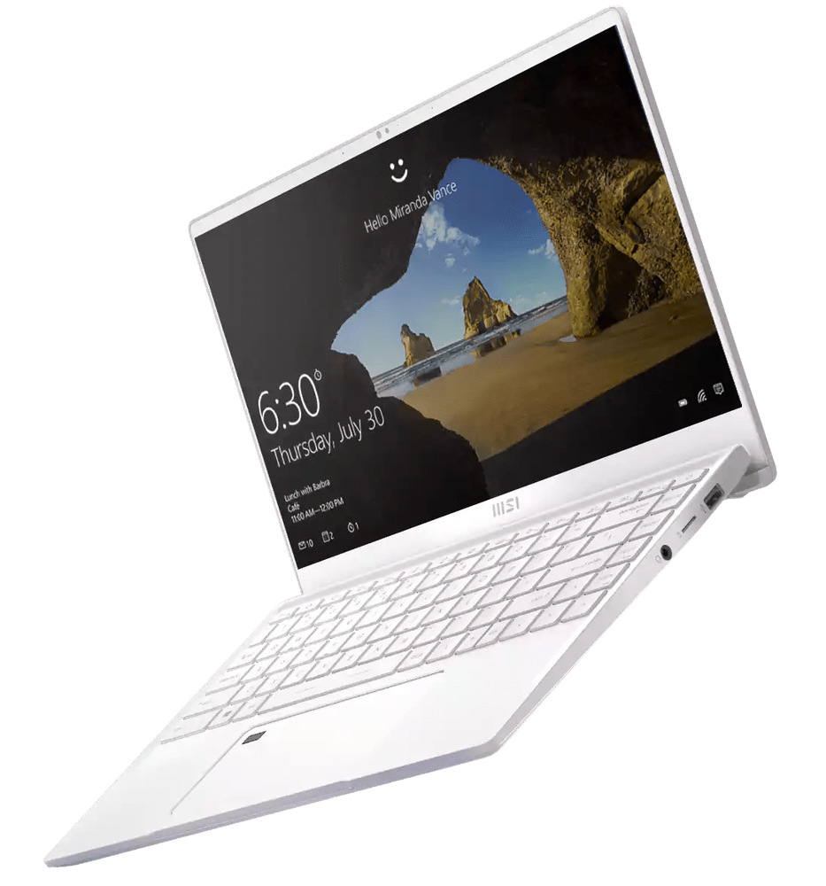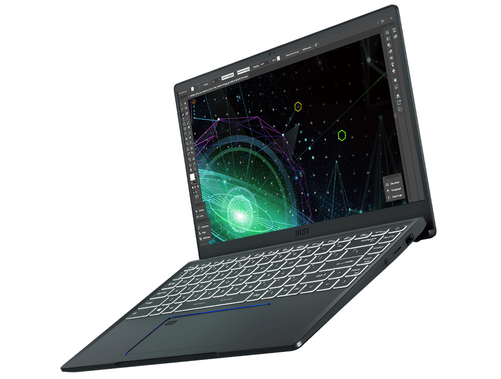 Společnost MSI přichází s novým notebookem, který díky svým kompaktním rozměrům 31,9 × 21,9 × 15,9 mm a hmotností 1,29 kg snadno uschováte do jakékoliv tašky a můžete jej tak mít vždy s sebou při cestě do školy nebo od práce. Stylový tmavý design doplňují ikonické prvky a logo společnosti na zadní straně. Po odklopení víka vás ohromí 14" IPS displej s UHD rozlišením (3840 × 2160 px), certifikací True Pixel a 100% pokrytím AdobeRGB barev. Barevná přesnost Delta E<2 zajišťuje nezbytnou sadu pro kreativní práci, přesné úpravy fotografií a mnoho dalšího. Úzké rámečky lemující displej v sobě uschovávají webkameru s HD rozlišením a IR senzory pro přihlašování pomocí skenování obličeje prostřednictvím Windows Hello.