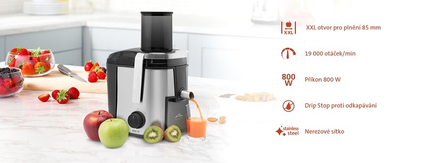 Odšťavňovač ETA Fresher II se postará o skvělou výtěžnost a 100% zachování všech vitaminů.