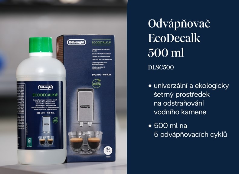 Milujete vůni a výraznou chuť kvalitní kávy? DeLonghi je osvědčeným výrobcem kávovarů, které vám lahodný nápoj vytvoří během několika málo minut. Aby však spotřebič dlouhodobě správně pracoval, je třeba ho udržovat v čistotě. K tomu vám poslouží DeLonghi EcoDecalk. Jde o tekutý odvápňovací prostředek, který si poradí s tvořícím se vodním kamenem. Jeho složení je zcela ekologicky nezávadné, aniž by přitom utrpěla jeho kvalita a čisticí síla. Pravidelné používání odvápňovače zajistí vašemu kávovaru dlouhou životnost a zvýší jeho energetickou účinnost.