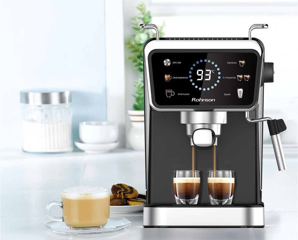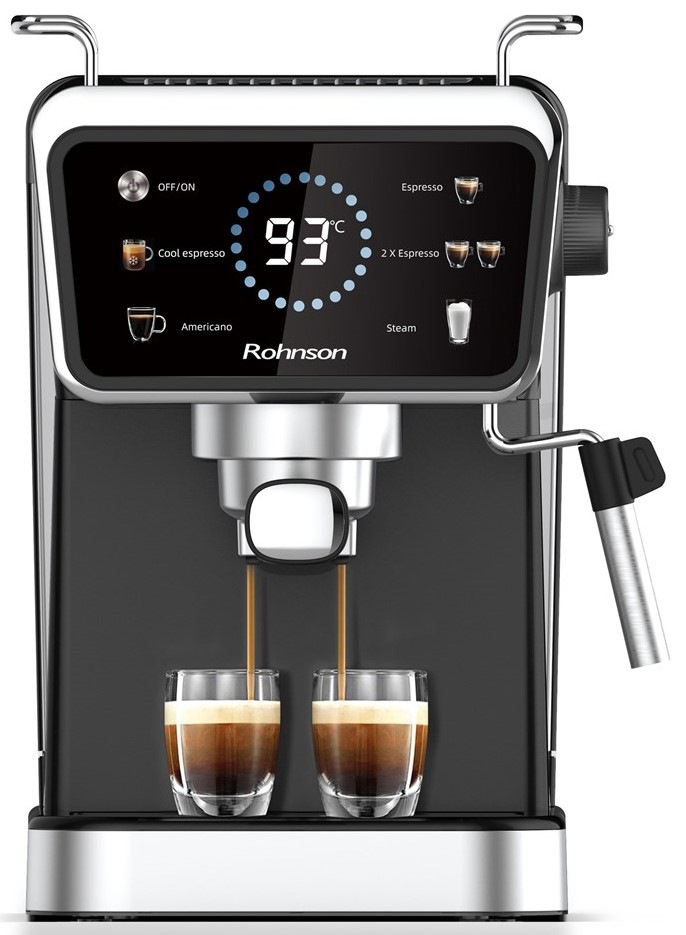 Nedokážete si představit ráno bez hrnku oblíbené kávy s vyváženou chutí, která provoní celý byt? Kávovar Espresso Rohnson R-98015 Hot & Cold se stane výborným a spolehlivým společníkem pro každého, kdo si chce užít nezapomenutelný kávový zážitek v pohodlí domova. Nechte se hýčkat kávovými specialitami, jako je intenzivní espresso, lahodné cappuccino nebo osvěžují ledová káva. Jeho černé provedení s chromovými prvky přinese do vaší kuchyně nádech elegance. Se šířkou 26 cm představuje skvělé řešení i pro méně prostorné kuchyňské linky.
