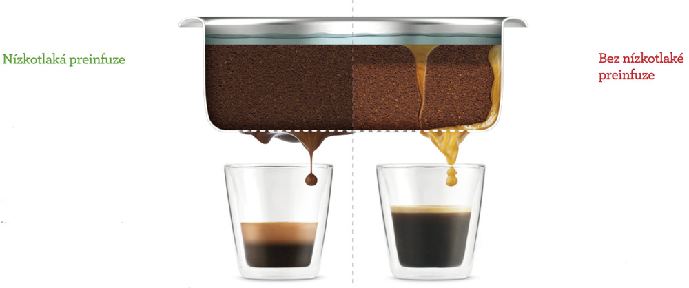 - Nízkotlaká preinfuze zaručuje vyváženou extrakci kávy