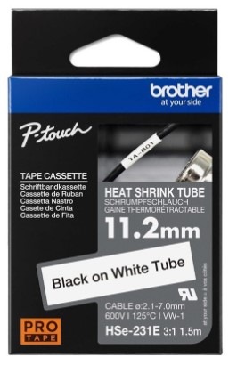 Originální smršťovací bužírka Brother HSE-221E z profesionální řady PRO Tape, poznatelná podle svého charakteristického černo-modrého balení, představuje spolehlivé řešení pro značení širokého spektra vodičů a kabelů, včetně síťových a optických, s průměrem od 2,1 do 7,0 mm. Tato bužírka o šířce 9,0 mm a délce 1,5 m nabízí jasný černý tisk na bílém pozadí, což zaručuje výbornou čitelnost a dlouhou životnost vytvořeného značení. S vysokým poměrem smrštitelnosti 3:1, znamenajícím zmenšení průměru o 50 % či více, se tato bužírka dokonale přizpůsobí tvaru označeného kabelu při aplikaci doporučenou teplotou v rozmezí 110 až 140 stupňů Celsia. Tato páska splňuje náročnou normu UL224, která stanovuje požadavky na elektrickou pevnost, teplotní odolnost a hořlavost, a dosahuje hodnocení hořlavosti VW1. Smršťovací bužírky Brother jsou navrženy pro spolehlivou elektrickou izolaci až do 300 V. Pro uživatele PC připojitelných tiskáren Brother může být pro plnou funkčnost vyžadováno stažení a instalace nejnovější verze firmwaru. Bužírku HSE-221E je možné používat s vybranými modely tiskáren Brother, které podporují potisk HSE bužírek, konkrétně s modely PT-E300VP, PT-E550W, PT-P750W, PT-P900W, PT-P950NW a PT-D800W.