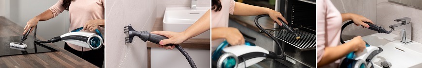 - Lze využít jako ruční parní čistič, nebo tyčový parní mop