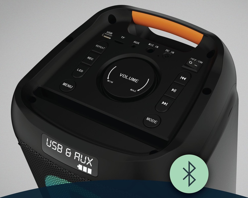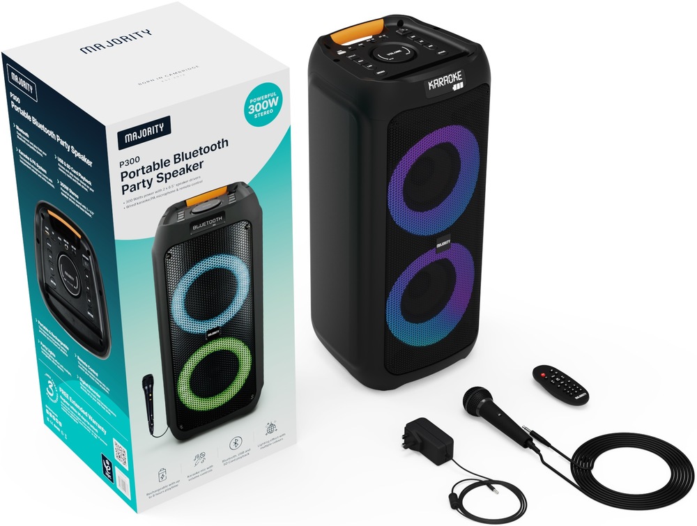 Majority P300, černáUdělejte pořádnou party s bezdrátovým party reproduktorem Majority P300, jehož funkce v mžiku promění jakoukoliv sešlost v zábavnou karaoke party. Kompaktní tělo reproduktoru nabízí kvalitní repro soustavu, která se postará o dostatek hudebního doprovodu a zábavu na dlouhé hodiny. Hlavní zvukovou parádu dělá 300W reproduktor doprovázený poutavou LED světelnou show pro navození té správné hudební atmosféry. Připojení reproduktoru s telefonem probíhá pomocí bezdrátově Bluetooth, případně máte k dispozici AUX vstup, dvojici USB a slot pro paměťovou microSD kartu.