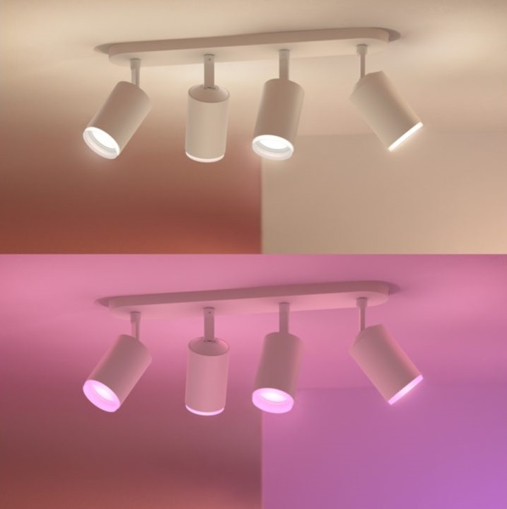 Společnost Philips přichází se svojí zavedenou značkou Hue s novými bodovými světly s umístěním na strop, které vás na první pohled zaujmou širokou možností přizpůsobení, a to hlavně díky čtyřem bodovým světlům, které si můžete nastavit dle libosti tak, aby osvětlovaly určité místo ve vaší domácnosti. Získáte tak nejen praktické světlo pro vaše každodenní činnosti, ale i originální světelná schémata pro večerní posezení s přáteli. Světlo můžete snadno nastavit skrze mobilní aplikaci na jakékoliv barvy z barevného RGB spektra nebo je nechat svítit pouze bílou barvou. Pro správné navození atmosféry můžete využít teplé bílé světlo, zatímco při maximálním soustředění vám přijde vhod studené světlo. Teplota barev se pohybuje v rozmezí od 2 000 do 6 500 K.