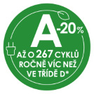 Využití moderních technologií a kvalitního zpracování optimalizuje spotřebu energie u pračky Candy RP 286BWMR8/1-S o 20 % oproti standardním pračkám třídy A. V praxi to znamená možnost spustit o 267 cyklů ročně více ve srovnání s pračkami třídy D, při zachování stejné energetické spotřeby.