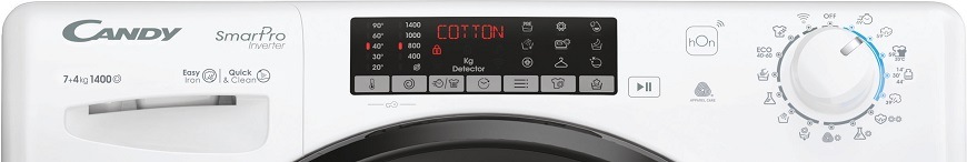 Kombinace pračky a sušičky Candy CSOW 4746TWMB5-S nabízí kompaktní SLIM rozměry a hloubku 45 cm (s přesahem 48 cm). Ovládání je velmi přehledné díky 6místnému textovému displeji. Kapacita praní je 7 kg a sušení 4 kg. Součástí výběru je 7 programů, které jsou do hodiny hotové, včetně rychlého parního cyklu. Skvělá aplikace hOn vám kromě dálkového ovládání poskytne i doplňkové funkce a cykly. Pomocí aplikace můžete sledovat spotřebu zařízení a dostávat různé tipy.