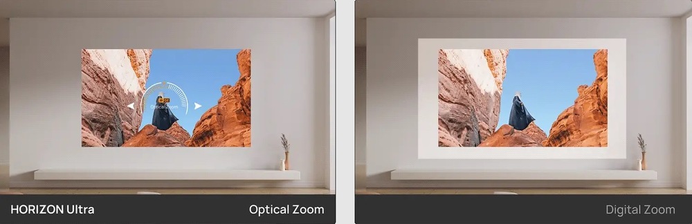Plně automatický optický zoom dokáže obraz přiblížit, aniž by docházelo ke ztrátám kvality nebo ořezání obrazu. Zaměřte se na detail a získejte ze sledování ještě intenzivnější zážitek. Kromě domácího použití se projektor hodí také na prezentace a přednášky ve firmách či školách.