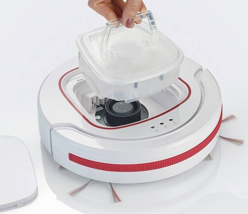 robotický vysavač • Li-Ion baterie s dobou provozu 90 minut • objem nádoby na nečistoty 350 ml • hlučnost 65 dB • dlouhé kulaté kartáče • senzor proti pádu ze schodů • pogumování pro ochranu nábytku • čisticí nářadí • výměnný filtr