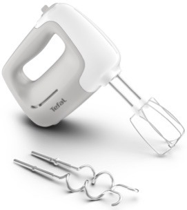 Ruční mixér Tefal vám pomůže s přípravou oblíbených pokrmů. Tefal HT450B38 Prep Mix se pyšní silným motorem s příkonem 450 W, který se postará o perfektní promísení všech surovin. Součástí balení jsou 2 šlehací metly a 2 hnětací háky, které na spotřebič jednoduše nasadíte. Obsluhu ručního šlehače usnadní i rukojeť s ergonomickým povrchem.