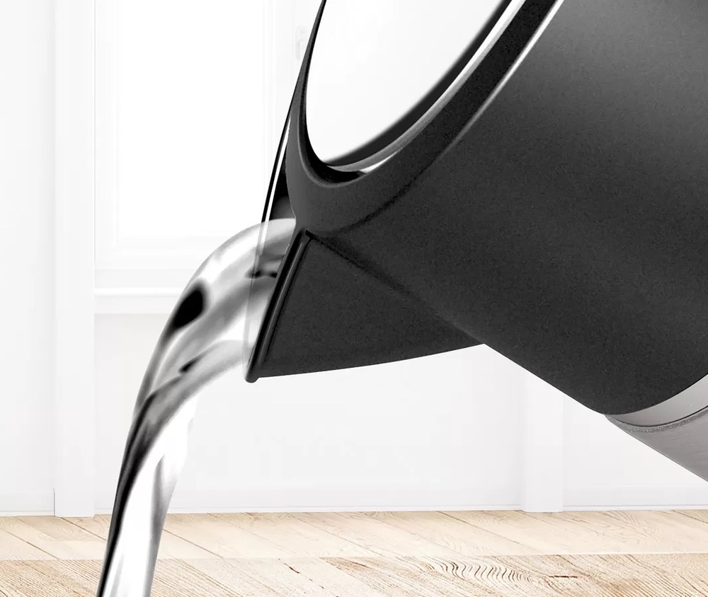 Kabel od konvice je připojen k základně, takže konvici můžete přenášet kam potřebujete. A pokud potřebujete uvařit vodu, konvici postavte na základnu v libovolném směru. 360° základna poskytuje větší flexibilitu. Pod základnou je připraveno uložiště kabelu, odkud si můžete vytáhnout jen potřebnou délku nebo ho smotat a celou konvici schovat do skříňky.