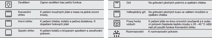 K nadstandardním funkcím patří bezpochyby funkce minutka, která vám pomůže lépe koordinovat přípravu oblíbených pochoutek. Můžete si nastavit dobu trvání pečení, po jejímž uplynutí budete informováni akustickým signálem. Ovládání je přitom řešeno jednoduchou kombinací LED displeje a dvou otočných ovladačů. Když je trouba vypnutá, displej zobrazuje nastavený aktuální čas. Vnitřek je navíc efektně osvětlen, abyste měli o připravovaném pokrmu vždy dokonalý přehled.Spotřebič je vybaven chladicím ventilátorem, jenž snižuje teplotu vnitřních komponentů a tím prodlužuje jejich životnost. Využít můžete pečení na dvou úrovních současně, což bude ideální při přípravě pokrmů pro větší počet strávníků. Součástí balení je smaltovaný plech pro zachytávání mastnoty a samozřejmě i chromovaný rošt na grilování.