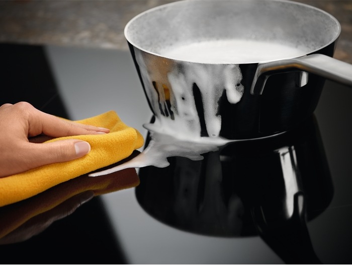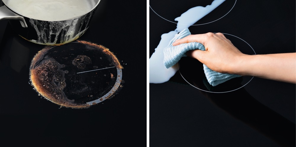 Údržba varné desky je maximálně jednoduchá. Plocha kolem varných nádob zůstává chladná na dotek, i když vaříte při vysokých teplotách. Přetečené tekutiny se nepřipalují a stačí je snadno setřít vlhkým hadříkem.