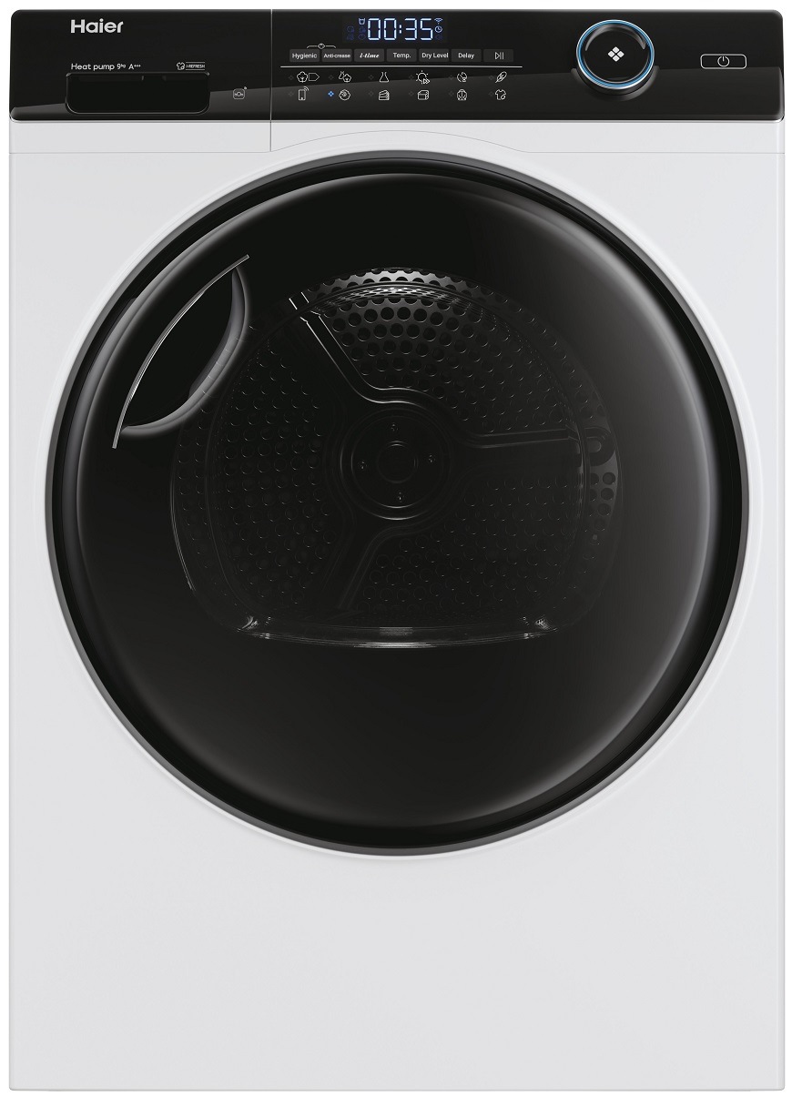 sušička prádla • kapacita 9 kg • energetická třída C • 20 let záruka na motor • připojení Wi-Fi a Bluetooth s možností ovládání přes aplikaci hOn • 3 úrovně senzorového sušení – Extra suché, Do skříně, K žehlení + studený vzduch • tepelné čerpadlo • funkce i-Time – umožňuje upravit délku cyklu sušení • buben PillowDrum – šetrný buben s polštářkovými výstupky • program i-Refresh – pomocí páry odstraní bakterie, alergeny a sníží pomačkání prádla • dotykový displej • V × Š × H: 85 × 59,5 × 60 cm