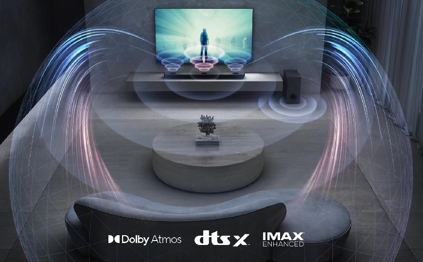 Připojte k soundbaru zadní reproduktory SPQ8-S a maximalizujte výstup do kanálů v uspořádání 7.1.3. Výsledkem bude pohlcující zvuk, linoucí se ze všech směrů. Získáte tak pocit, že jste přímo v centru všeho dění. Soundbar LG S90QY je navíc vybaven funkcí AI kalibrace prostoru, která analyzuje okolní prostor a zajišťuje optimální zvuk.