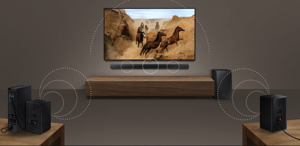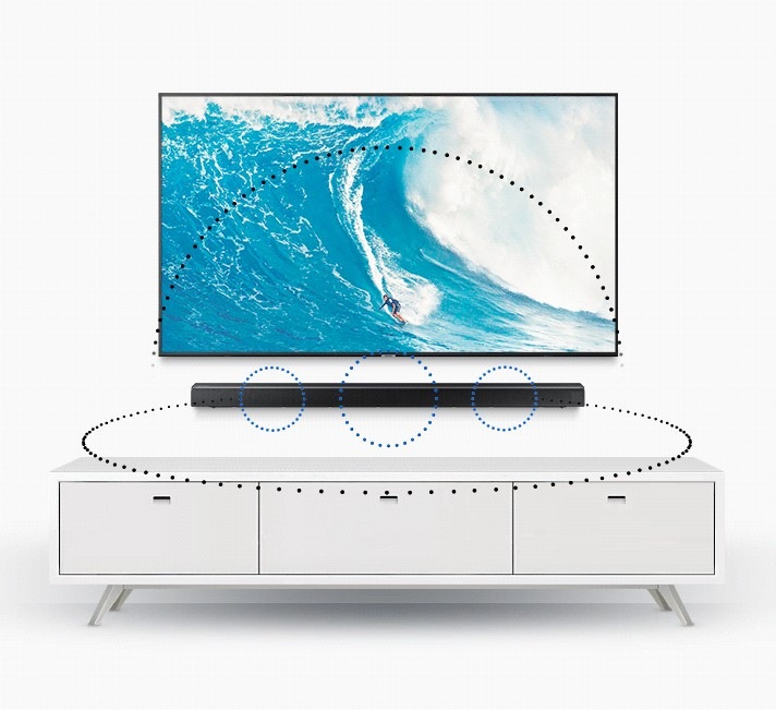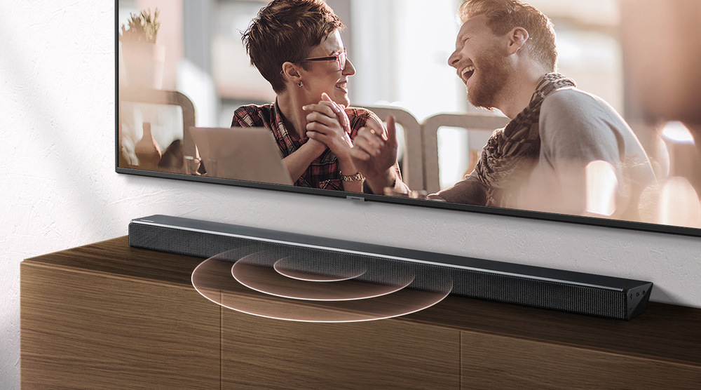 Vychutnávejte si dialogy s čistým a jasným zvukem. Zařízení se vyznačuje speciálním středním reproduktorem, který zaručuje, že budete všem rozhovorům dobře rozumět. Soundbar navíc můžete zapojit ke své televizi Samsung bezdrátově prostřednictvím Wi-Fi nebo Bluetooth.