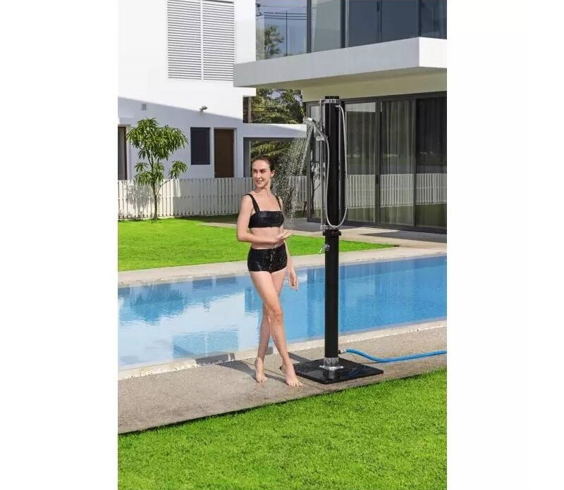 Solární sprcha Bestway 58695 20l SOLARFLOW je vybavena černou nádržkou o objemu 20 litrů, abyste se mohli osprchovat krásně teplou vodou například u bazénu.