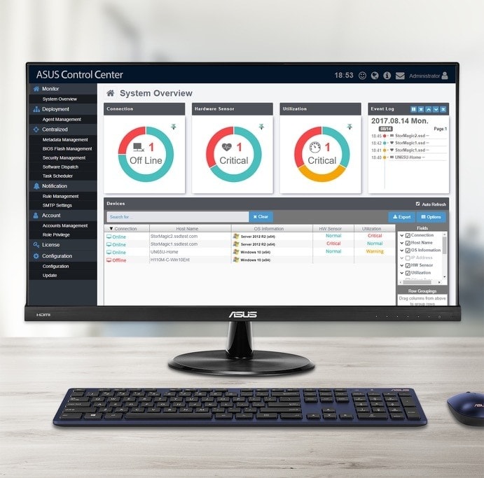 Ke správě počítače použijte rozhraní ASUS Control Center, kde budete mít vše potřebné přehledně na jednom místě.