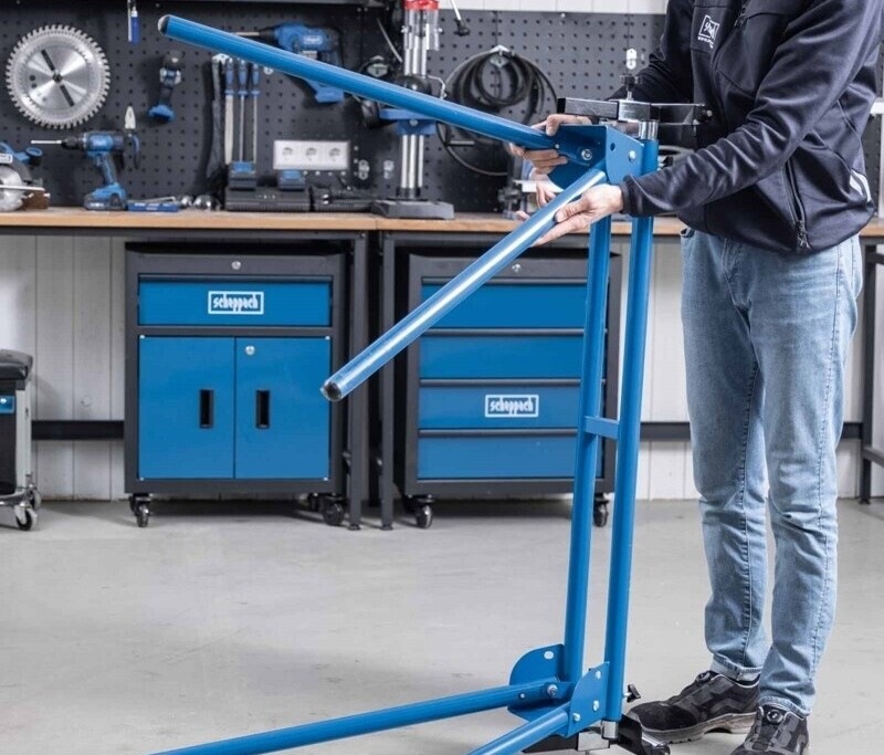 Ocelovo-hliníková konstrukce s nosností až 150 kg je dostatečná pro většinu běžných prací. S výškou 81 cm a váhou pouhých 12 kg je ideální i pro řemeslníky, kteří často pracují na různých místech a potřebují stojan snadno přenášet a transportovat. Nohy jsou pro lepší manipulaci jednoduše sklopitelné.