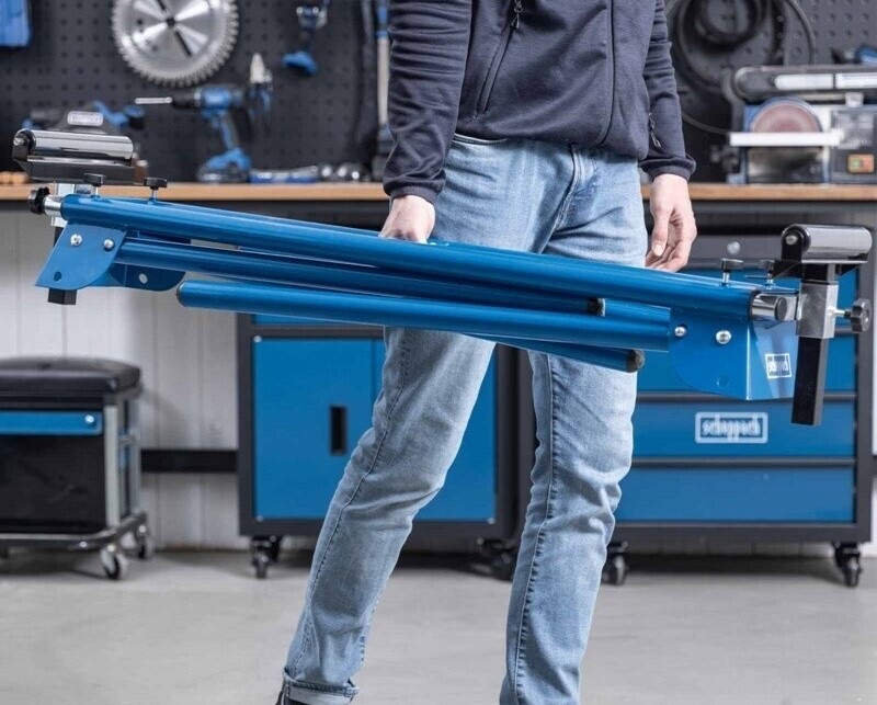 Kompaktní stojan Scheppach UMF 1600 nabízí ideální řešení pro rozšíření vaší pracovní plochy nebo vytvoření flexibilního a provizorního pracovního stolu kdekoli potřebujete, např. v garáží, venku na zahradě nebo přímo na stavbě. Primárně je navržen pro pokosové pily (vhodný je až pro 95% modelů na trhu), efektivně ale poslouží i jako pracovní stůl i pro další dílenské nářadí, např. některé druhy brusek, dělících pil na kov apod. Jeho flexibilní způsob umístění si oblíbíte, můžete ho totiž postavit kdekoliv do prostoru a to tak, aby vám i delší kusy dřeva nezavazely. Součástí stojanu jsou upínací lišty na pilu s pohodlným rychloupínacím systémem, oboustranně vysouvatelná ramena se dají nastavovat bez pomoci nářadí v rozsahu 100 až 265 cm. Podstavec z oceli a lehkého hliníku nabízí nosnost až 150 kg, což je dostatečné pro většinu prací.