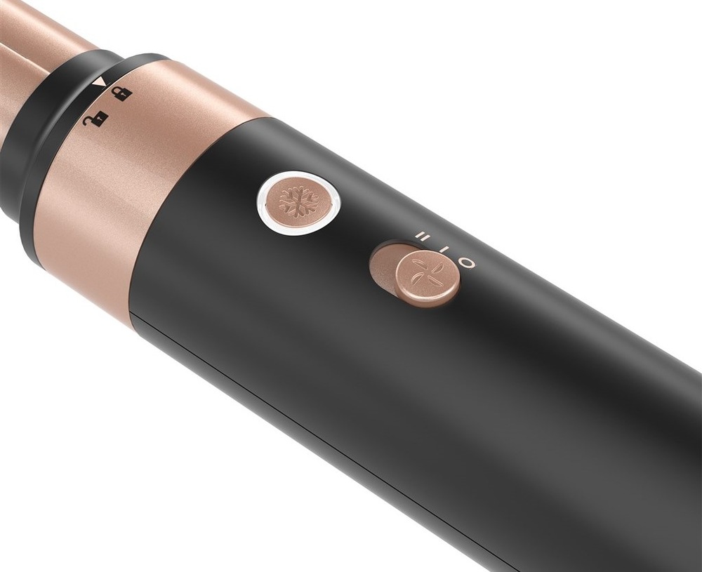 styler • příkon 1 400 W • počet rychlostí: 2 • počet teplot: 3 teploty (50 °C, 70 °C, 90 °C) • délka přívodního kabelu: 1,8 m • ionizace • funkce paměti nastavené teploty • Coanda efekt pro automatické natáčení vlasů vzduchem • příslušenství: válcová kulma, koncentrátor, oválný a kulatý kartáč, 2 kulmy pro natáčení v různých směrech