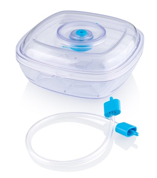 Součástí balení je 5 vakuovacích sáčků o rozměrech 20 × 30 cm. Sáčky jsou odolné a zdravotně nezávadné, můžete v nich potraviny mrazit nebo je ohřívat ve vodě a po umytí je lze využít i opakovaně. Balení obsahuje rovněž fólii (200 × 20 cm), hadičku na odsávání a vakuový box o objemu 1 000 ml.