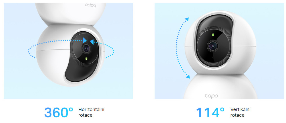 Kamera pokryje celý pokoj: nabízí 360stupňovou horizontální rotaci a 114stupňovou vertikální.