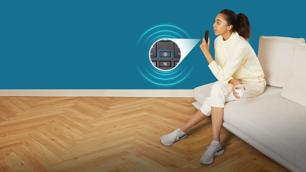 Spolu s televizí dostanete v balení také chytré ovládání. Nejen, že s ním snadno změníte nastavení odkudkoliv v místnosti, zároveň s jeho pomocí spustíte hlasové ovládání, takže stačí pouze vyslovit své přání a televize vám ho splní.