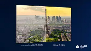 Rozlišení 4K Ultra HD představuje na obrazovce více než osm milionů pixelů. Vylepšená kvalita obrazu i díky technologiím HDR, včetně HDR10+ a Dolby Vision, přináší ostré snímky plné detailní hloubky, vysokého kontrastu a přirozených přechodů i pohybů, abyste si sledování užili na maximum.
