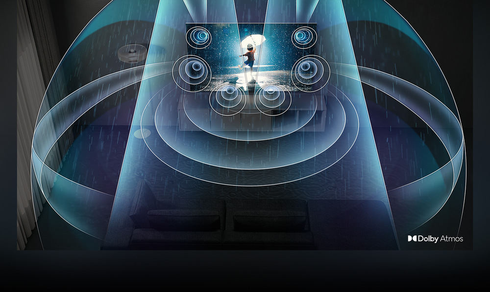 Televize se navíc může pochlubit realistickým a dynamickým zvukem. Díky automatické kalibraci zvuku SpaceFit Sound zase získáte vždy optimální audio zážitek přizpůsobený vašemu prostoru. Technologie Dolby Atmos přináší dokonalý prostorový zvuk, který vás vtáhne do děje.
