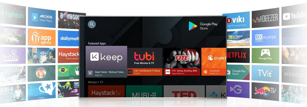 Vybírejte si z bohaté nabídky dostupných aplikací včetně streamovacích služeb nebo her, které máte k dispozici v obchodě Google Play. Televize se tak stane nejen prostředkem pro sledování audiovizuálního obsahu, ale vytvoříte si s její pomocí na jednom místě ucelené a kvalitní multimediální centrum zábavy.