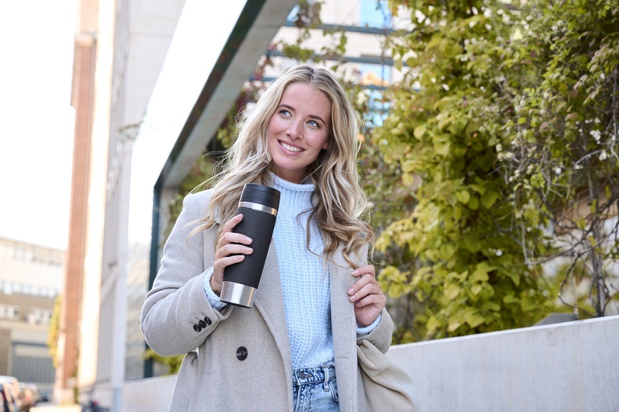 Díky dvoustěnnému vakuovému provedení udrží nápoje teplé až 4 hodiny, studené až 8 hodin.
