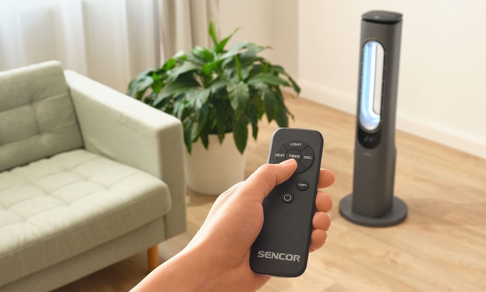 Zařízení se snadno ovládá. Můžete si regulovat intenzitu výkonu, nastavit oscilaci a mnoho dalšího, a to vše pomocí dodávaného dálkového ovládání. Nastavení snadno upravíte také přímo na těle topidla, kde se nachází přehledný panel s dotykovými tlačítky.