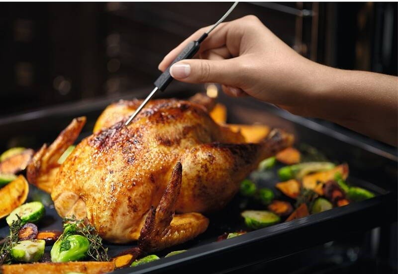 S použitím teplotní sondy docílíte dokonalých výsledků i při náročnějších receptech. Umožní vám v každém okamžiku pečení sledovat teplotu uvnitř pokrmu a po dosažení požadované trouba automaticky ukončí přípravu pokrmu.