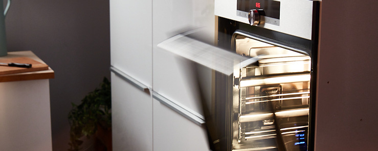 Aniž byste to tušili, nebo museli ručně spouštět funkci čištění, trouba se průběžně udržuje čistá sama. Jakmile totiž dosáhne teploty minimálně 85 °C, povrch z katalytického smaltu absorbuje mastnotu. Při větším znečištění zase využijete funkce EcoClean, která vyčistí troubu pomocí páry.