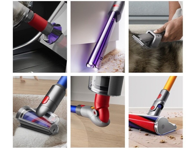 Sada obsahuje univerzální podlahovou hubici Motorbar™, kombinovanou hubici, štěrbinovou hubici, nabíjecí adaptér a úchyt na stěnu pro pohodlné skladování.