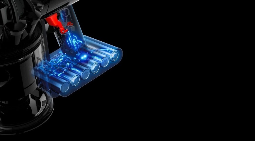 - Li-Iontový akumulátor s nikl-kobalt-hliníkovou anodou (pevnou součástí těla vysavače)