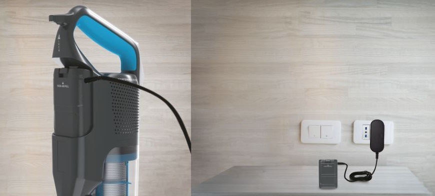Plného nabití vysavače dosáhnete již za pouhé 2,5 hodiny! Jednoduše zapojte nabíječku do zásuvky a připojte nabíjecí kabel do vysavače. Alternativně můžete také vyjmout baterii a vzít ji tak k jakékoli zásuvce, abyste mohli kdekoli pohodlně a bez omezení nabíjet. Vysavač je vybaven LED indikátorem, který ukazuje stav baterie: kdy je čas ji dobít nebo kdy je připravena k použití. Abyste dosáhli dlouhé životnosti Lithium Ion baterie, doporučujeme ji nabíjet po každém použití.