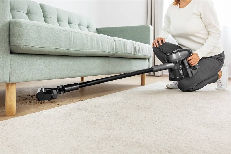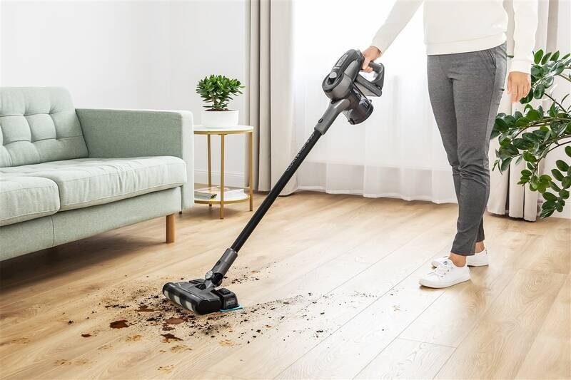 Ačkoliv se jedná o tyčový vysavač vhodný na podlahy a koberce, s tímto šikovným zařízením zvládnete uklidit i poličky nebo kuchyňskou linku. Kdykoliv potřebujete, můžete z těla přístroje vytáhnout ruční jednotku se samostatným kartáčem. Ta je lehká a má praktickou rukojeť, takže ji můžete pohodlně ovládat a vysávat všude tam, kam se s podlahovou hubicí nedostanete.