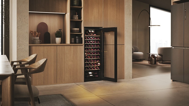 Vinotéku můžete ovládat a monitorovat prostřednictvím aplikace hOn, která nabízí širokou škálu dodatečných informací a tipů, co se týče vinařství nebo údržby zařízení. Přímo v aplikaci je i propojení s platformou Vivino, kde si můžete vybrat víno přesně podle svých preferencí. Aby se vinotéka stala plnohodnotným členem domácnosti, musí do ní bezprostředně pasovat. Díky možnosti změnit směr otevírání dvířek zapadne vinotéka Haier HWS58GGH1 do každého obydlí.