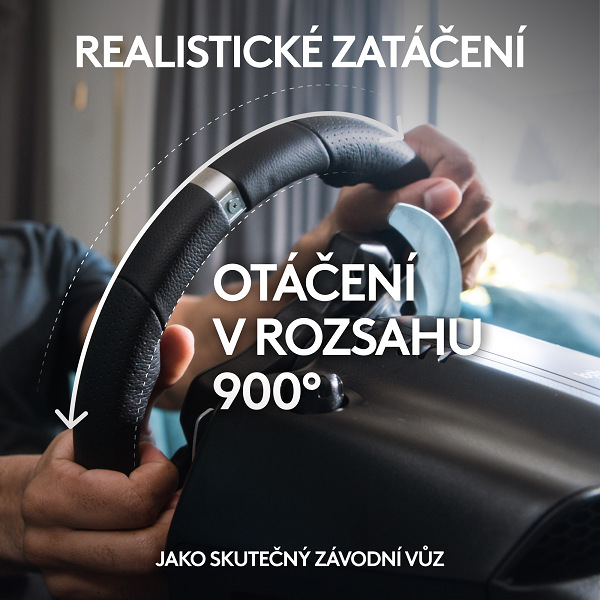 Díky velkému rozsahu otáčení volantu se budete cítit jako v opravdovém voze. Celkem až dvě a půl otáčky volantu při jízdě do zatáček odpovídá stejnému rozsahu jako v reálném autě, takže svou jízdu prožijete se vším všudy.