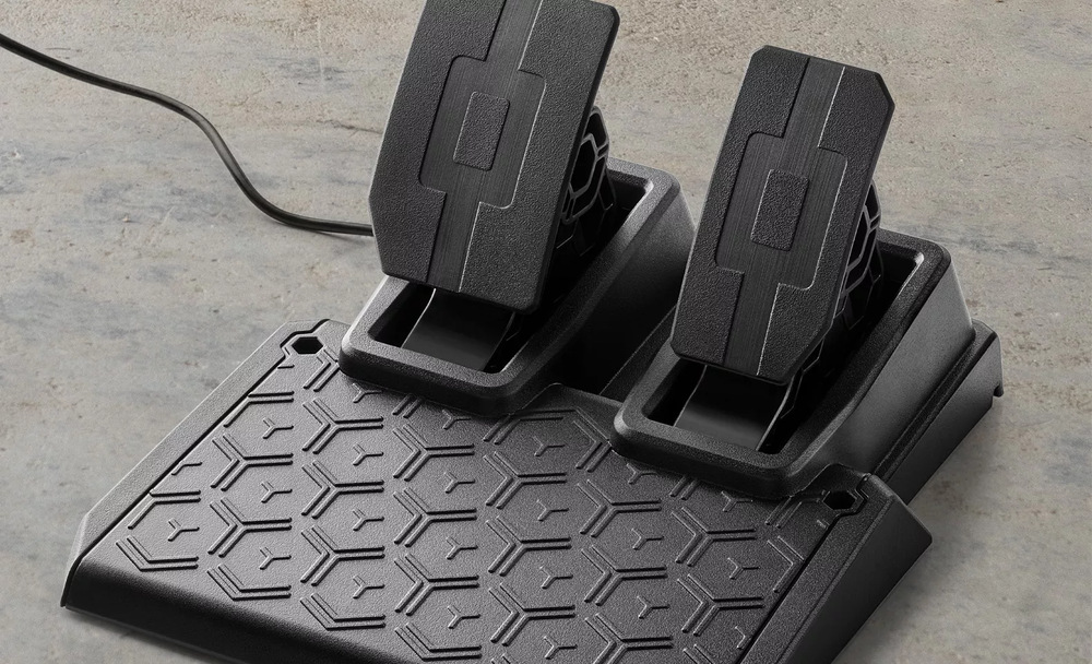 herní volant • určeno pro Playstation 4 a Playstation 5 • poloměr otáčení až 900° • 13 tlačítek + D-pad • magnetické pedály • dynamická zpětná vazba • hybridní mechanismus na bázi řemenů a převodového systému • LED signalizující otáčky motoru • upevňovací systém kompatibilní se všemi deskami stolů • 2 magnetické řadicí páky • aktualizace skrze USB-C • rozměry 260 × 300 × 250 mm • hmotnost 4 kg