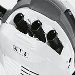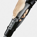 Velice praktické je zabudované dálkové ovládání na ergonomické rukojeti, s neklouzavou povrchovou úpravou softgrip, se kterým se nemusíte neustále ohýbat až k zařízení. Nastavíte si sací výkon a nebo využijte funkci Stand by, která zařídí krátkou pauzu při práci, například, když potřebujete něco přemístit v místnosti.